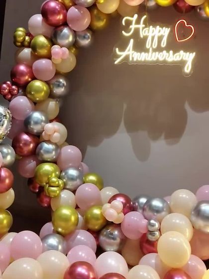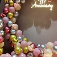 I create beautiful photo backdrops for anniversaries of any year, from the 1st to the 25th and beyond. I use circular balloon arches, custom neon signs, and large light-up marquee numbers to celebrate your specific milestone.