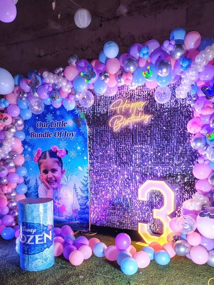 Kids’ parties are where I go all out. You pick a theme - cartoon, jungle, cricket, unicorn, whatever your kid is obsessed with - and I’ll set up the whole look. Expect large balloon arches, custom backdrops with their name, big age numbers, plus life-size cutouts. “Masti ho jayegi!” (It’ll be a blast!)