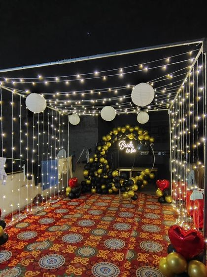 I also create setups for other special moments like bride-to-be parties or welcome ceremonies. I can build custom canopies with fairy lights or design unique floor art with flower petals for any occasion.