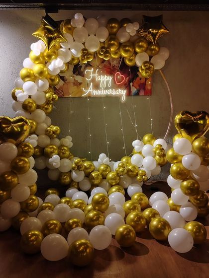 I create special setups to celebrate your anniversary, whether it's your first or your thirtieth. I can arrange decorations in your home or a hotel room, using balloons, neon signs, and marquee numbers to mark the milestone.