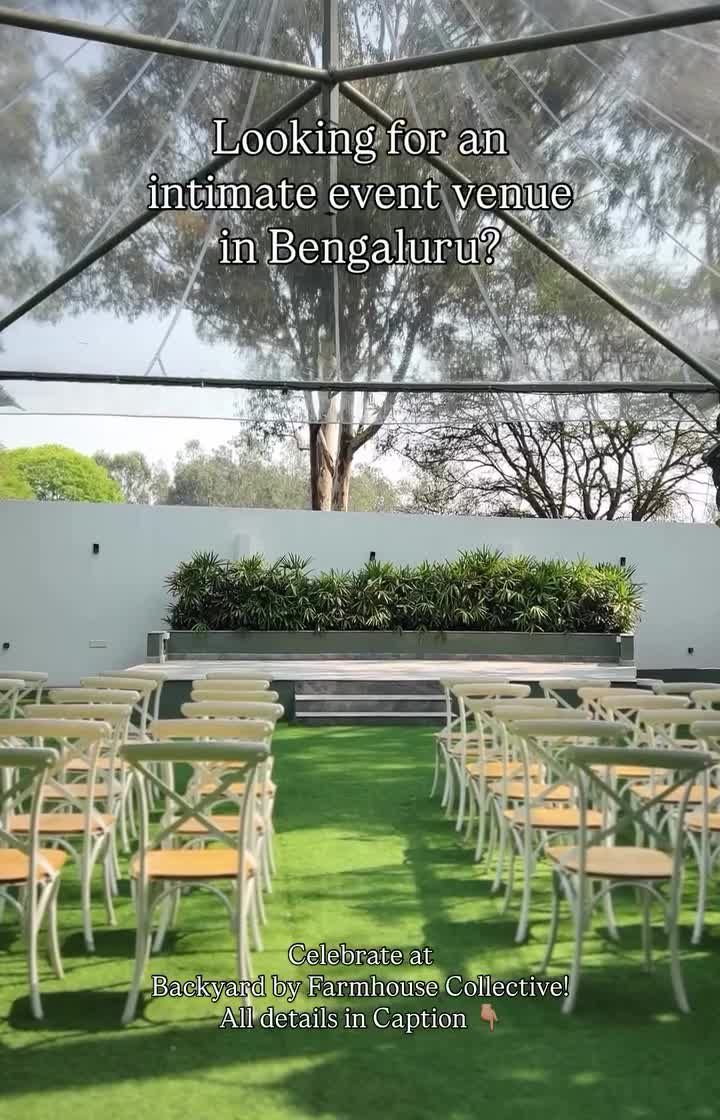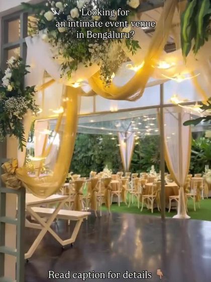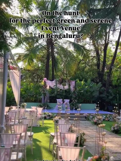 This is my main and largest space, designed to host grand celebrations for up to 300 guests. The venue features expansive lawns, an elevated stage, a stone aisle, and a charming courtyard, all surrounded by mature trees and lush greenery that look stunning in both daylight and under evening lights.
