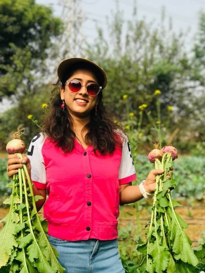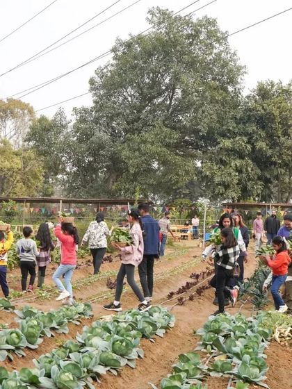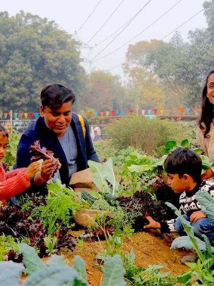 We offer a full day at our Gurgaon farm where you can pick vegetables, try pottery, feed animals, ride tractors, and eat food grown right here.