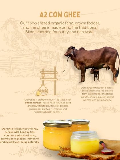 We grow and make all our fruits, veggies, ghee, and oils on our own chemical-free farm, and you can visit to pick your own produce.