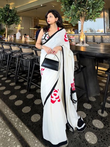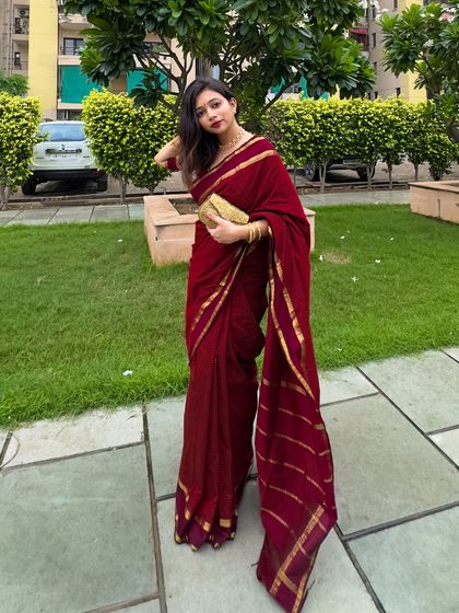 I help you style your sarees using your own wardrobe, with practical tips on fabric, color, blouse pairing, accessories, and upcycling for any occasion.