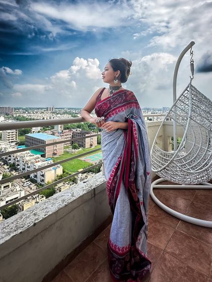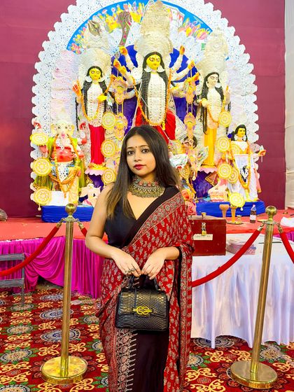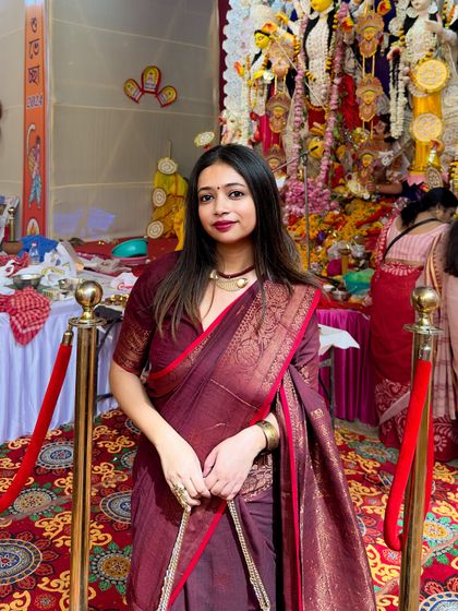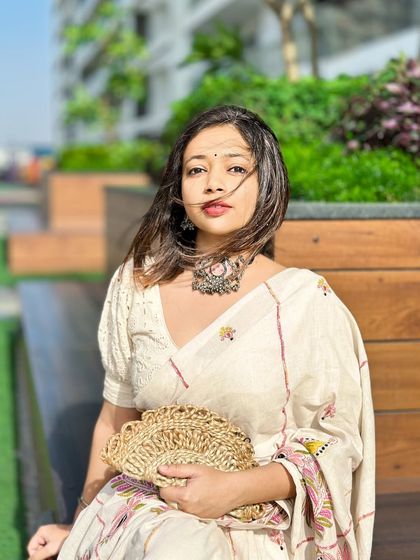 Hi, I’m Dyuti. Sarees? My jam, my blood, my Bengali roots. Festivals like Poila Boishak, Jamai Shoshti – I’m always in a saree, but I mix it up! Kolhapuri sandals, Dhakai Jamdani dupatta, Rajasthani jewelry, all mashed up for that Indian vibe. I call myself a minimal maximalist, learned loads in my 30s about self-love and healing. Your style’s your story, not just clothes. I want you to feel damn confident, saree date or just chilling.