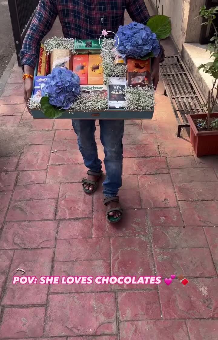 For the food lovers, I curate indulgent hampers filled with gourmet treats. This collection features everything from artisanal mithai and decadent chocolate arrangements to fine wines, healthy cakes, and premium dry fruits, all presented with my signature floral artistry.