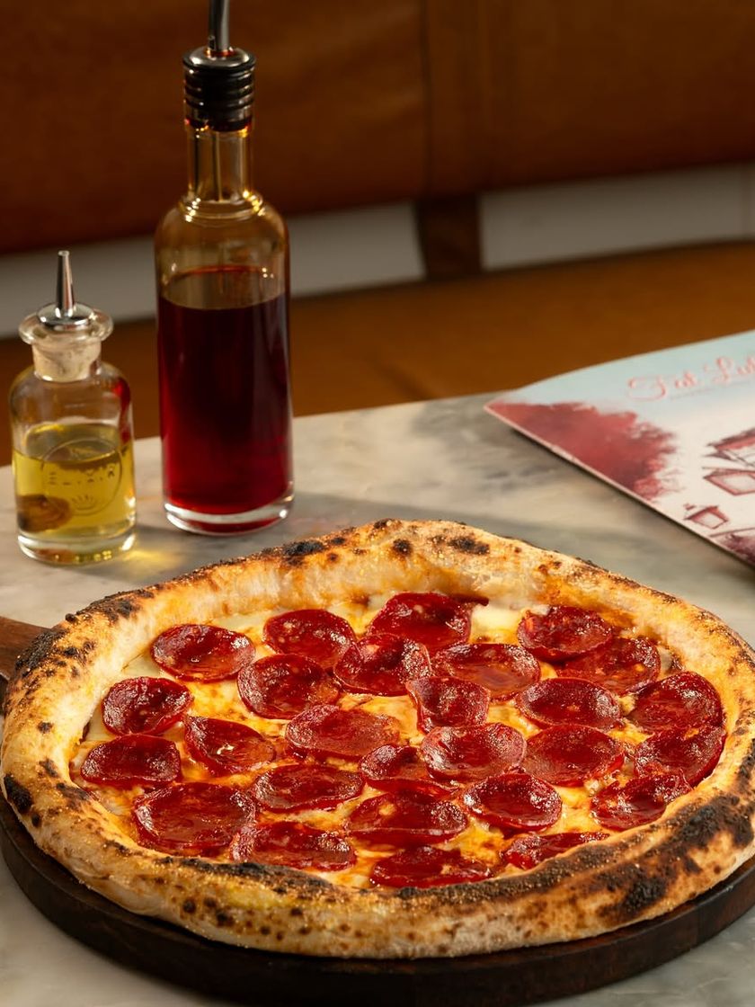 This is the heart of my kitchen. I make pizza with a Brooklyn soul, fired in a traditional wood oven for that perfect leopard-spotted char. I offer everything from classic Neapolitan and New York thin crust to cheesy, loaded American-style pies, and you can always go half-and-half if you can't decide.
