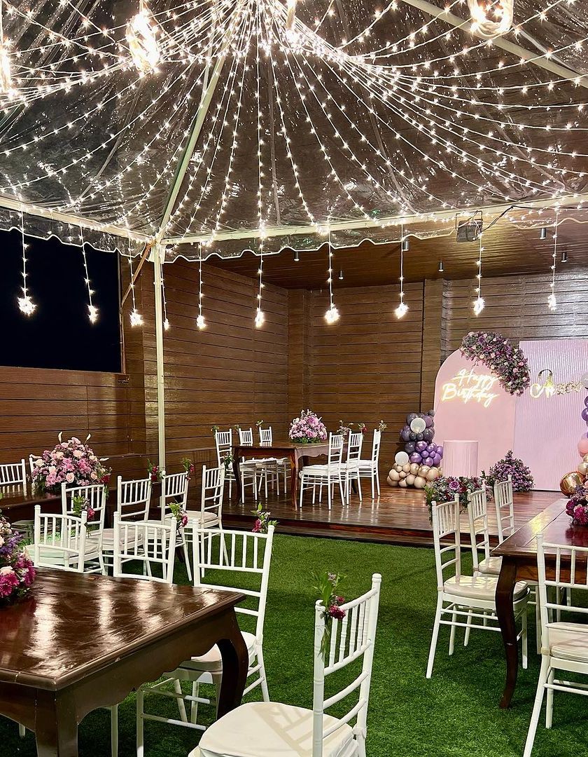 We create magical atmospheres for outdoor events, whether it's a romantic dinner, a poolside party, or a garden celebration. Our expertise lies in using fairy lights, elegant drapery, and lush florals to make the most of any open-air space.