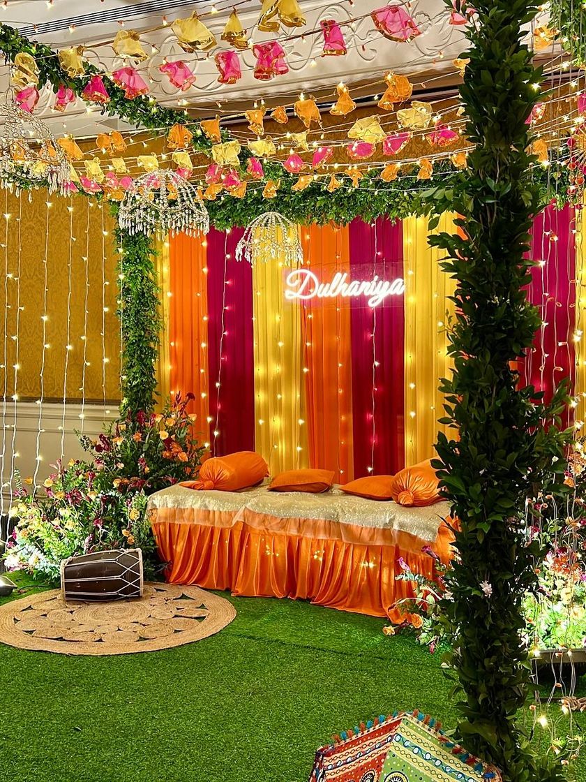 We love transforming your home into a festive wonderland for events like a Dholki, Mehendi, or Baat Pakki. We handle everything from vibrant backdrops and low-seating arrangements to beautiful floral details, making your personal space feel truly special.