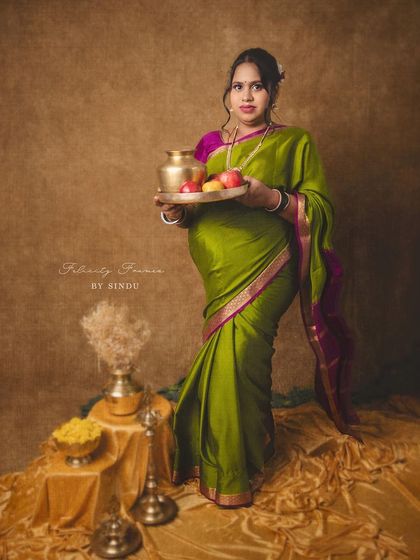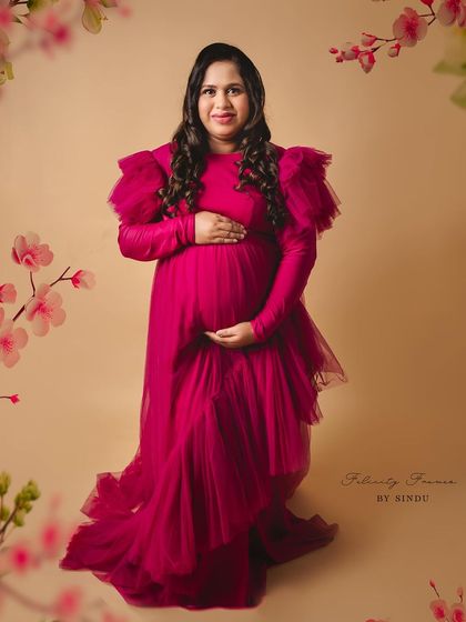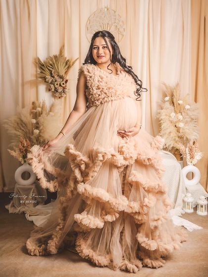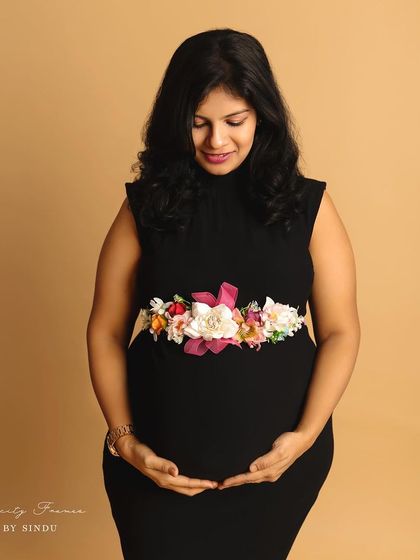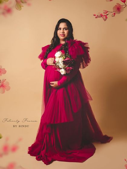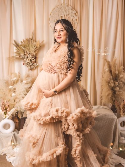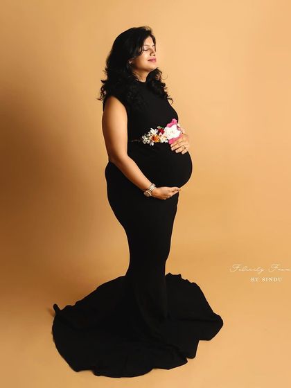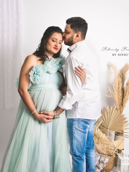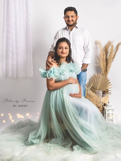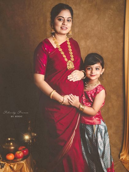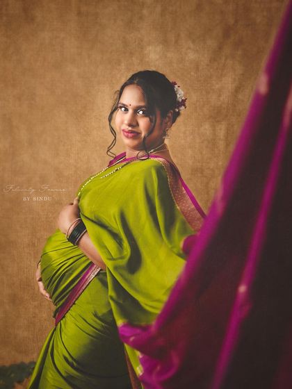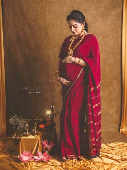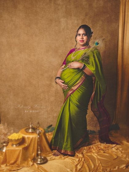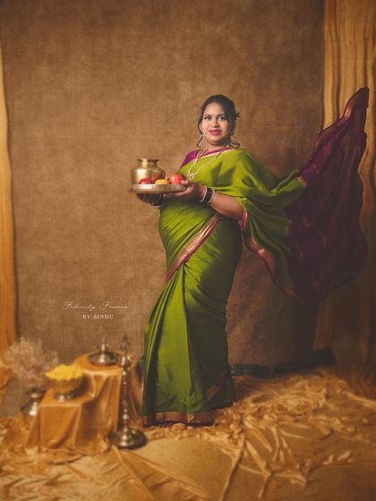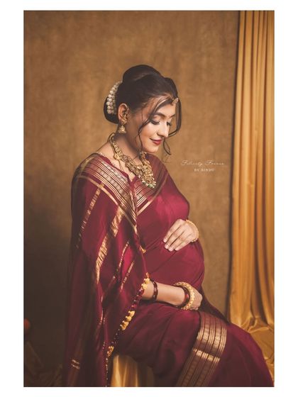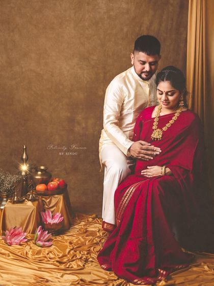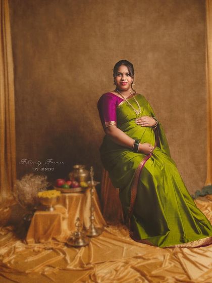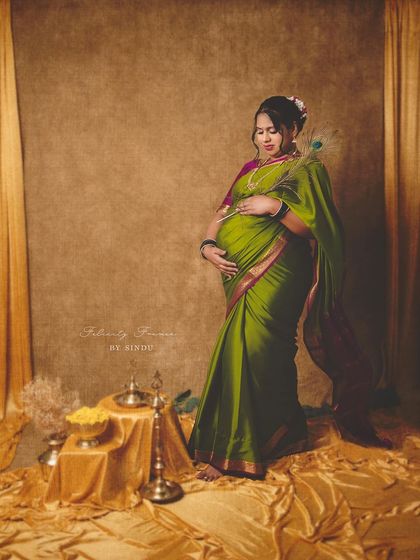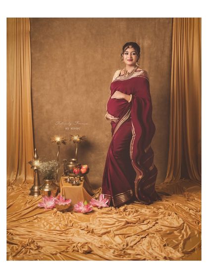 Celebrate your pregnancy with the richness of Indian tradition. These studio sessions are styled with beautiful sarees, classic props like brass vessels and lotuses, and I can arrange for a professional makeup artist to complete the look.