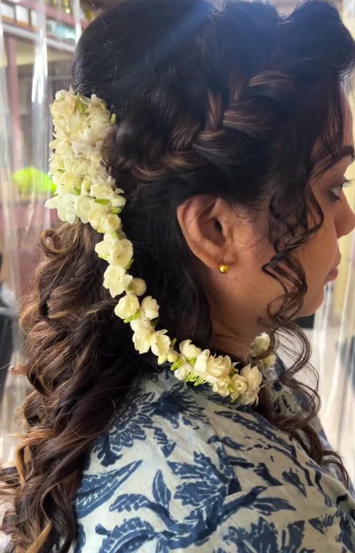 For weddings, festivals, or any special event, I create beautiful and detailed hairstyles. This includes traditional Indian braids like the Khajur and Five-strand Choti, as well as elegant updos and modern bubble braids, often decorated with flowers and accessories.