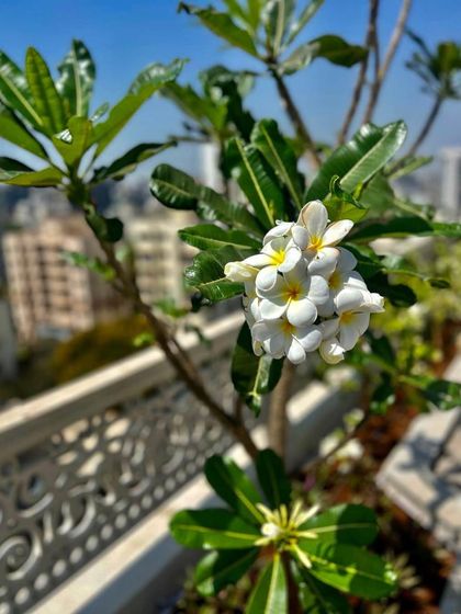 The reward of consistent care is a garden full of life and color. We nurture a variety of flowering plants, like Frangipani and Melastoma, ensuring they are expertly pruned and cared for to produce spectacular, healthy blossoms.