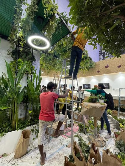We specialize in transforming large spaces like offices, exhibition halls, and event venues into lush green environments. Our service includes everything from conceptualization and design to the complete setup of hanging greenery, vertical walls, and statement trees.