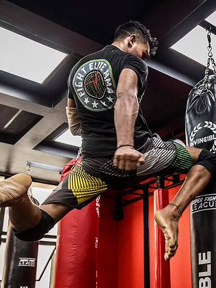 We build your striking from the ground up using techniques from boxing, kickboxing, and Muay Thai. Sessions include detailed instruction on shadow boxing for form, heavy bag drills for power, and dynamic pad work for accuracy and reaction.