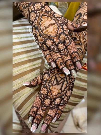 I create bridal mehndi that includes your story, custom portraits, and personal details, using natural henna for a deep stain.