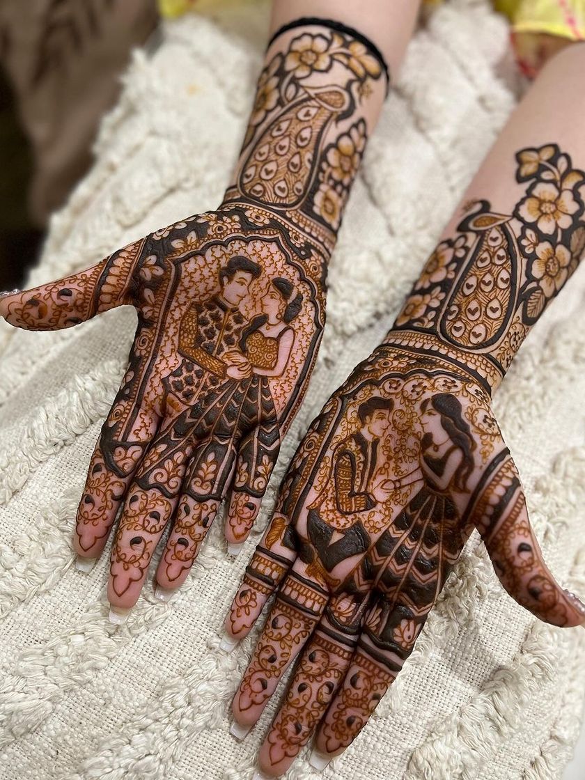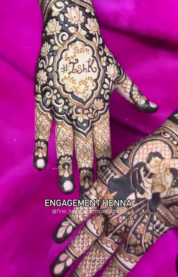 Your engagement or roka is the first step, and your mehndi should be just as special. I create personalized designs that include couple's initials, names, important dates, or symbols like engagement rings to celebrate your 'Baat Pakki' moment.