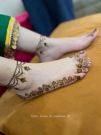 Mehndi isn't just for hands. I also create beautiful designs for feet, from simple floral patterns to intricate designs that look like traditional 'payals' or anklets. I also do unique placements like shoulder mehndi for a modern twist.