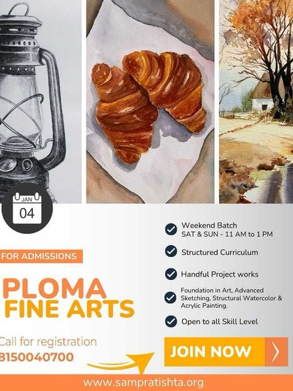 We offer step-by-step fine arts diploma and short courses with personal feedback, flexible batches, and a gurukul-style learning environment focused on practical skills.