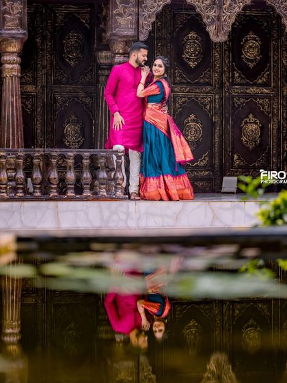 People see my pics and think, wow, all dreamy stuff. But honestly, the real magic? It’s the mess and laughter at home. My wife once joked I never click our own pics, so I did a family shoot – total chaos, but full of heart. That’s me, Firos. Sometimes I’ll say, ‘Sari itkolli… Nivu nodi, hoo nodi’ (Hold the saree… Look here, look at the flower) in Kannada. If you book me, you get me, not some random shooter. I just love telling love stories, one heartbeat at a time.