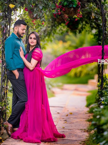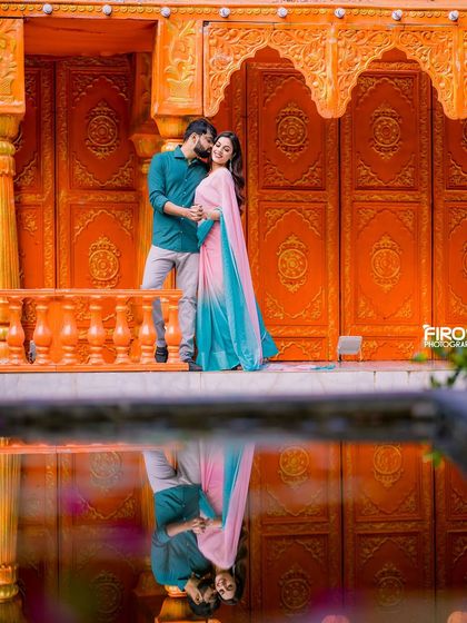 People see my pics and think, wow, all dreamy stuff. But honestly, the real magic? It’s the mess and laughter at home. My wife once joked I never click our own pics, so I did a family shoot – total chaos, but full of heart. That’s me, Firos. Sometimes I’ll say, ‘Sari itkolli… Nivu nodi, hoo nodi’ (Hold the saree… Look here, look at the flower) in Kannada. If you book me, you get me, not some random shooter. I just love telling love stories, one heartbeat at a time.