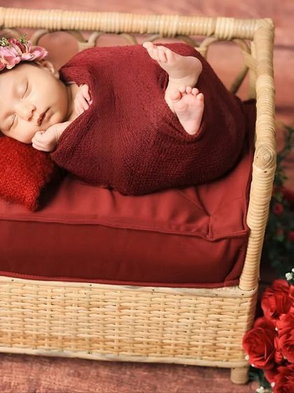My studio is a warm, safe, and peaceful space designed for your baby's first photoshoot. I specialize in the art of newborn posing, using the softest wraps and charming props like rustic baskets and tiny beds to create timeless portraits while prioritizing your baby's comfort and safety above all.
