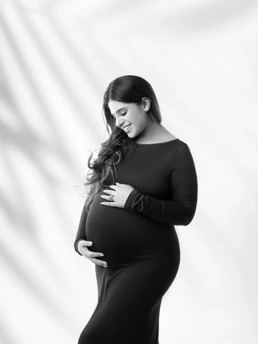 There is a classic, soulful beauty to black and white photography. This collection strips away color to focus on emotion, form, and light. We use monochrome to create dramatic, intimate, and timeless portraits that highlight the pure connection and the beautiful silhouette of pregnancy.