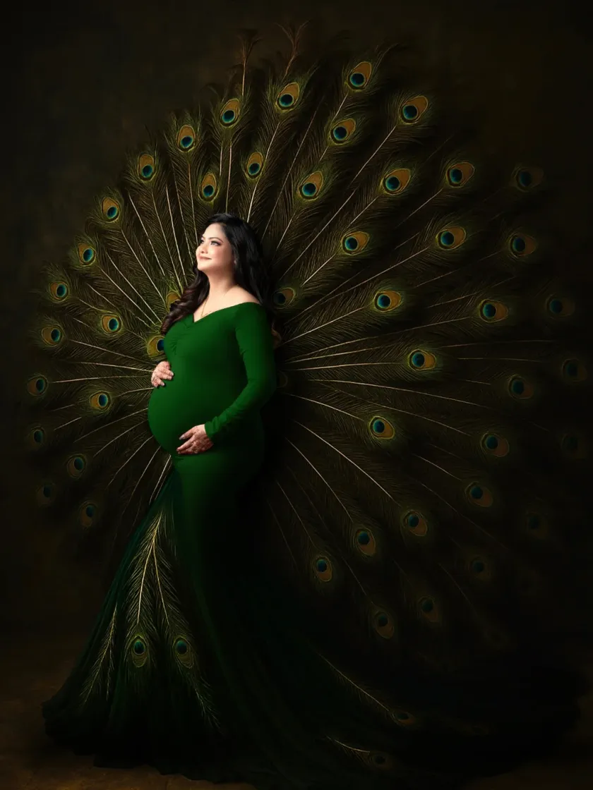 For those who want something truly unique, we design creative and thematic photoshoots. This collection highlights our artistic concepts, including ethereal angel wings, majestic peacock themes, dreamy moonlit silhouettes, and high-fashion "Vogue" style portraits. We use props and digital artistry to bring your imaginative vision to life.