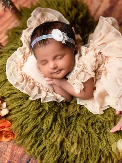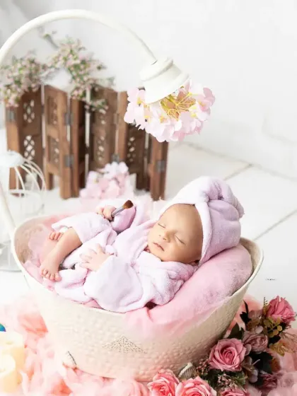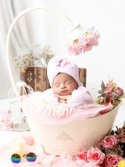 We specialize in creating serene and whimsical newborn portraits that capture your baby's precious early days. Our sessions feature soft color palettes, gentle props like plush toys and decorative baskets, and careful attention to your newborn's comfort.