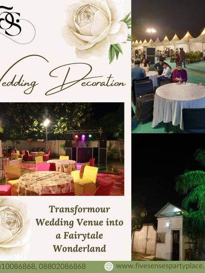 Our services extend to beautiful outdoor settings, including our open garden venue. See how we create magical ambiances with tent setups, thematic decor, and atmospheric lighting for evening events.