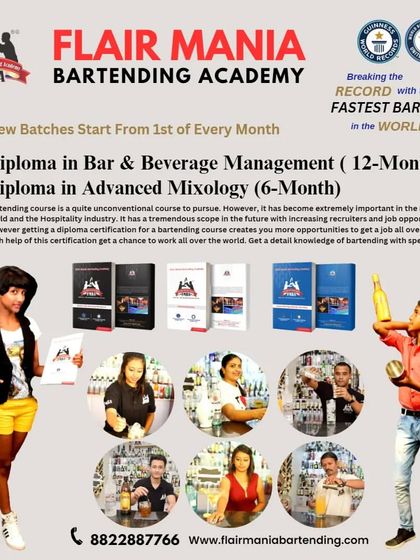 We are India's #1 bartending school and world record holders, offering courses in mixology, advanced flair, and coffee making. We teach with passion, from beginner basics to molecular mixology.