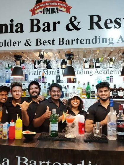 Hey, welcome to Flair Mania! Bartending wasn’t love at first sight for us, more like ‘koi no yokan’ - destiny calling, you know? We’re world record holders, won some big awards, but honestly, the best part is seeing our students catch the bug. We run workshops, judge competitions, travel all over - Goa beach one day, Ratnagiri the next. It’s not just work, it’s family. FMBA is home for bartenders. Learning, earning, living the passion.