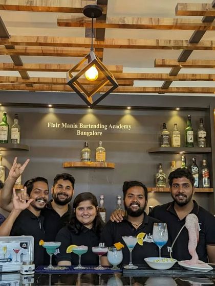 Hey, welcome to Flair Mania! Bartending wasn’t love at first sight for us, more like ‘koi no yokan’ - destiny calling, you know? We’re world record holders, won some big awards, but honestly, the best part is seeing our students catch the bug. We run workshops, judge competitions, travel all over - Goa beach one day, Ratnagiri the next. It’s not just work, it’s family. FMBA is home for bartenders. Learning, earning, living the passion.