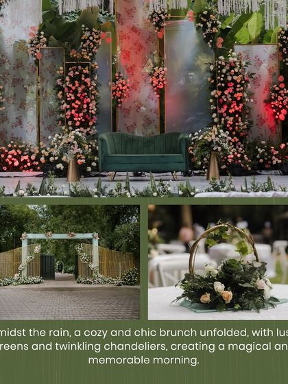 Signature Style - Our vibe? Timeless, classy, sometimes modern with geometric arches, sometimes traditional Haldi with bright flowers.