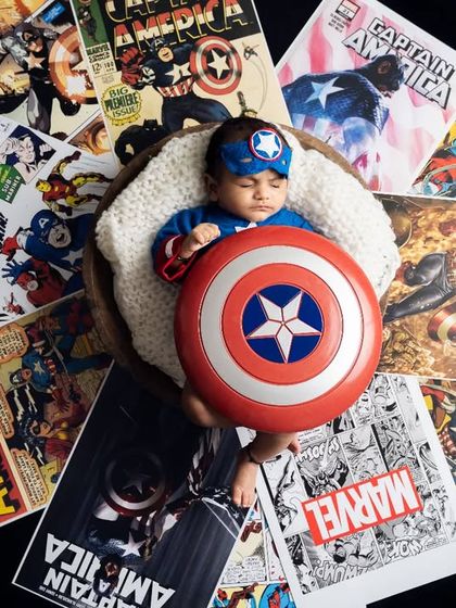 Have a fun idea? We love bringing it to life. Our studio is filled with props and backdrops for imaginative themes like a Smurf village, a jungle camp, or a superhero adventure, creating magical worlds for your child to explore.