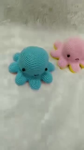 Dive into my collection of sea creatures. I make interactive reversible octopuses, colorful jellyfish with dangling tentacles, and chubby little whales. You can pick any color and size to create your own custom ocean friend.