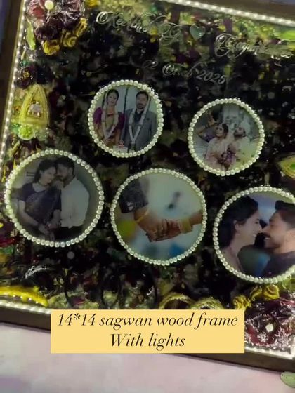 You get to pick everything - frames (Sagwan, Teak, floating), clocks, platters, album covers, even the background color or special touches like gold flakes, pearls, LED lights. I want you to feel that your custom wedding memento or any keepsake is as unique as your story.