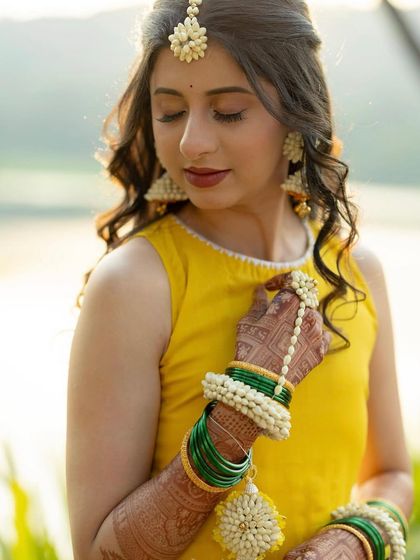 We create custom floral jewellery sets to make your Haldi and Mehendi ceremonies unforgettable. From vibrant yellow designs for your Haldi look to intricate pieces for your Mehendi, we can create full sets or individual items to match your outfit and style.
