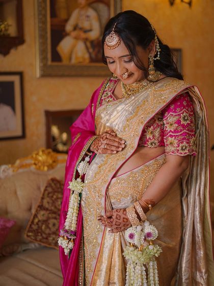 Celebrate the beautiful journey to motherhood with our special floral jewellery for baby showers, or Dohale Jevan. We design elegant and comfortable pieces for the mom-to-be, including full sets, delicate hair accessories, and floral waist belts (kamarbandh).