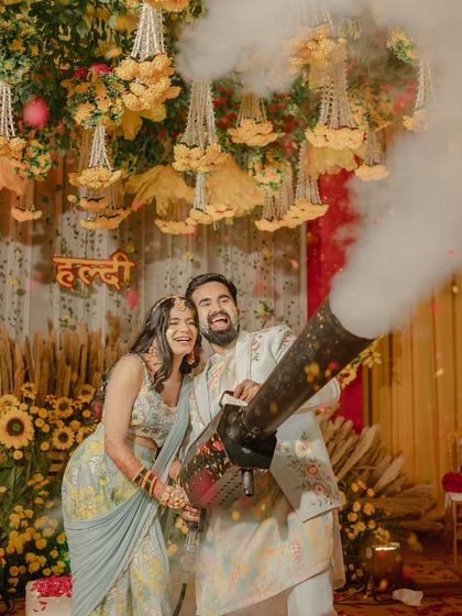 Couples seeking distinctive floral decor for their traditional ceremonies, especially those planning Haldi or wedding celebrations who value both aesthetic beauty and cultural authenticity.