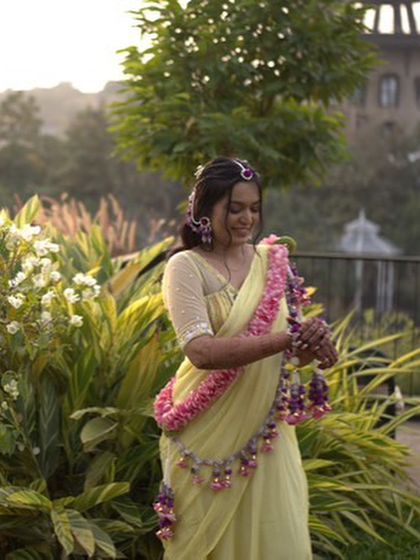 Fresh or artificial - you choose - We deliver fresh flowers pan-India, but artificial haldi jewellery is best for reusing or destination weddings.