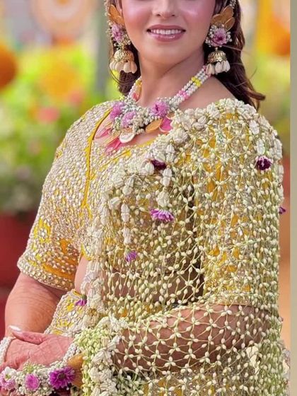 Fresh or artificial - you choose - We deliver fresh flowers pan-India, but artificial haldi jewellery is best for reusing or destination weddings.