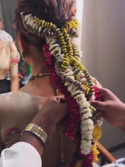 We specialize in creating stunning floral hair accessories that go beyond a simple gajra. Using traditional weaving techniques, my team and I can craft elaborate floral braids (veni) and decorated buns that become the centerpiece of your bridal look. We work with your hairstylist to bring your vision to life.