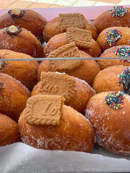My dessert tables are famous for a reason. I offer a variety of eggless treats including fluffy stuffed donuts, mini bombolonis, croissants, cupcakes, and seasonal strawberry specials.