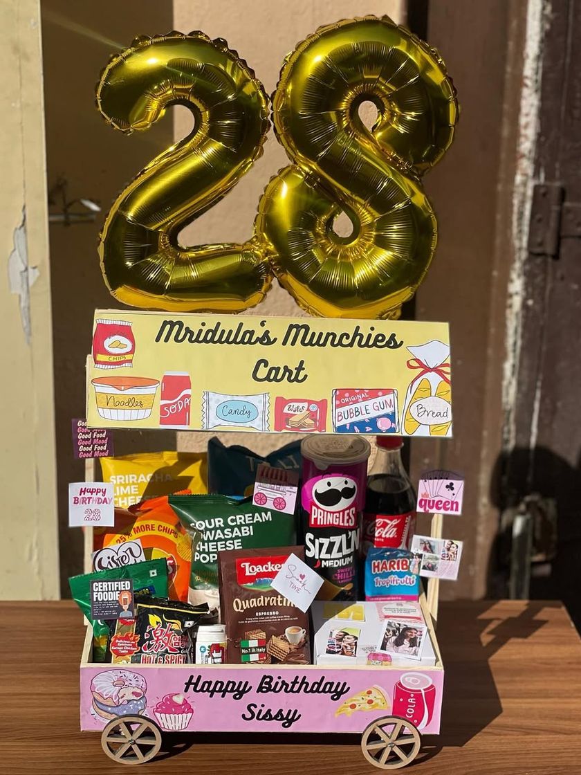 Looking for a unique gift? My custom-themed carts are perfect for birthdays and special occasions. I can fill them with a curated selection of munchies, baked goods, or any of your BFF's favorites.