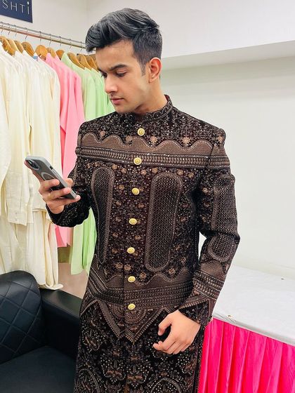 We specialize in premium groom wear rentals, offering an extensive collection of Sherwanis, Indo-western outfits, and accessories designed specifically for wedding ceremonies. Our collection features intricate embroidery, beadwork, and traditional craftsmanship, combined with modern styling elements.