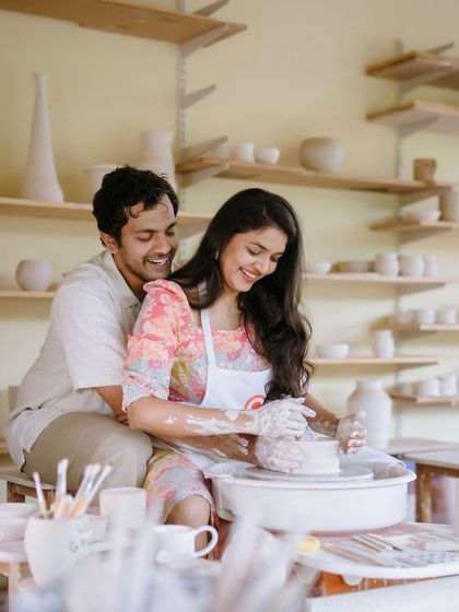 I love it when couples want to try something different for their pre-wedding shoot. An activity-based session, like this fun pottery-making date, is a fantastic way to capture your personalities and create truly unique, interactive, and memorable photos.