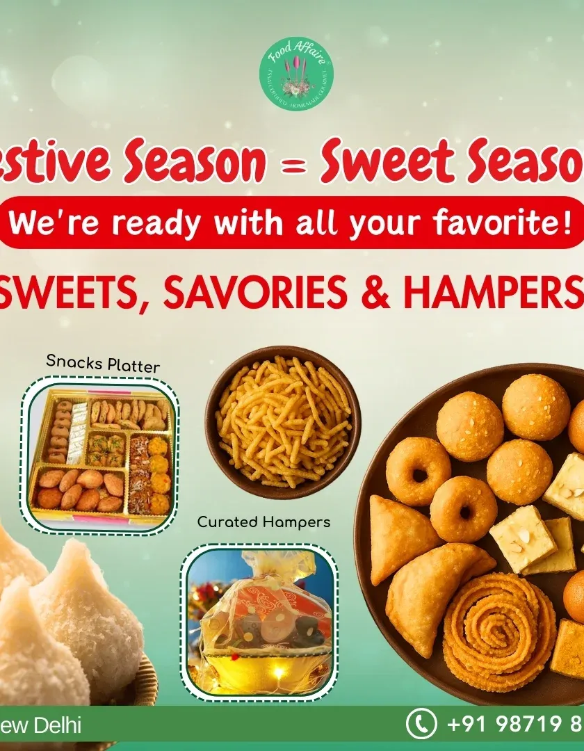 Celebrate every occasion with our special homemade treats. We create beautiful hampers for Diwali, Holi, Raksha Bandhan, and more, perfect for gifting to loved ones or for corporate orders. Each hamper can be customized with a mix of our sweets and savories.
