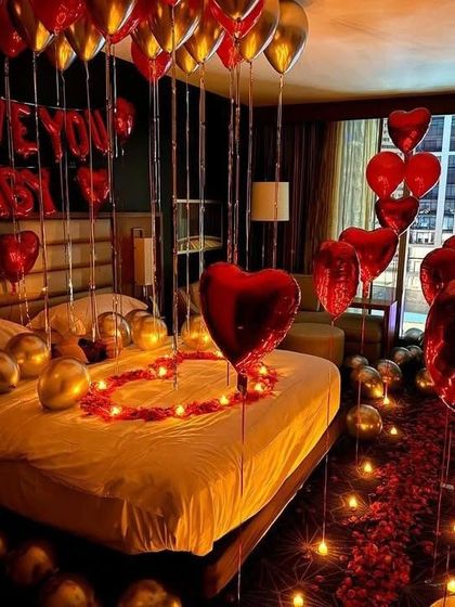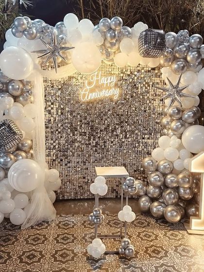 - Anniversary surprise setup is a favourite. Heart-shaped arches, romantic colors, and those big milestone numbers that just pop in every photo.