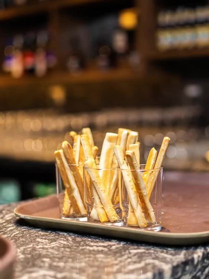 We offer a chic bar experience featuring an impressive selection of spirits and cocktails in a modern setting. Our elegant space is highlighted by a marble countertop and plush seating, creating a sophisticated yet relaxed atmosphere.