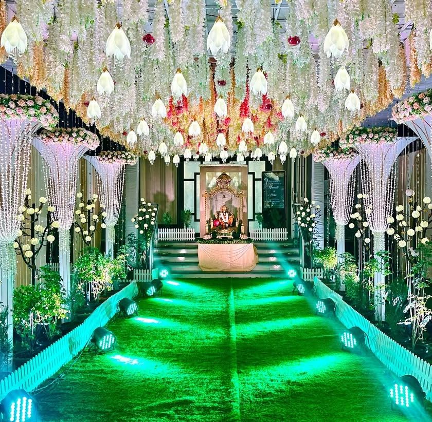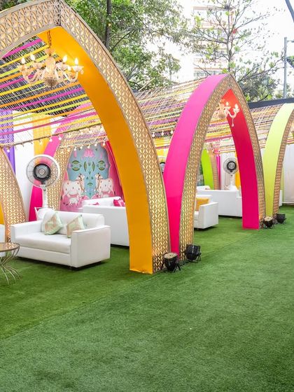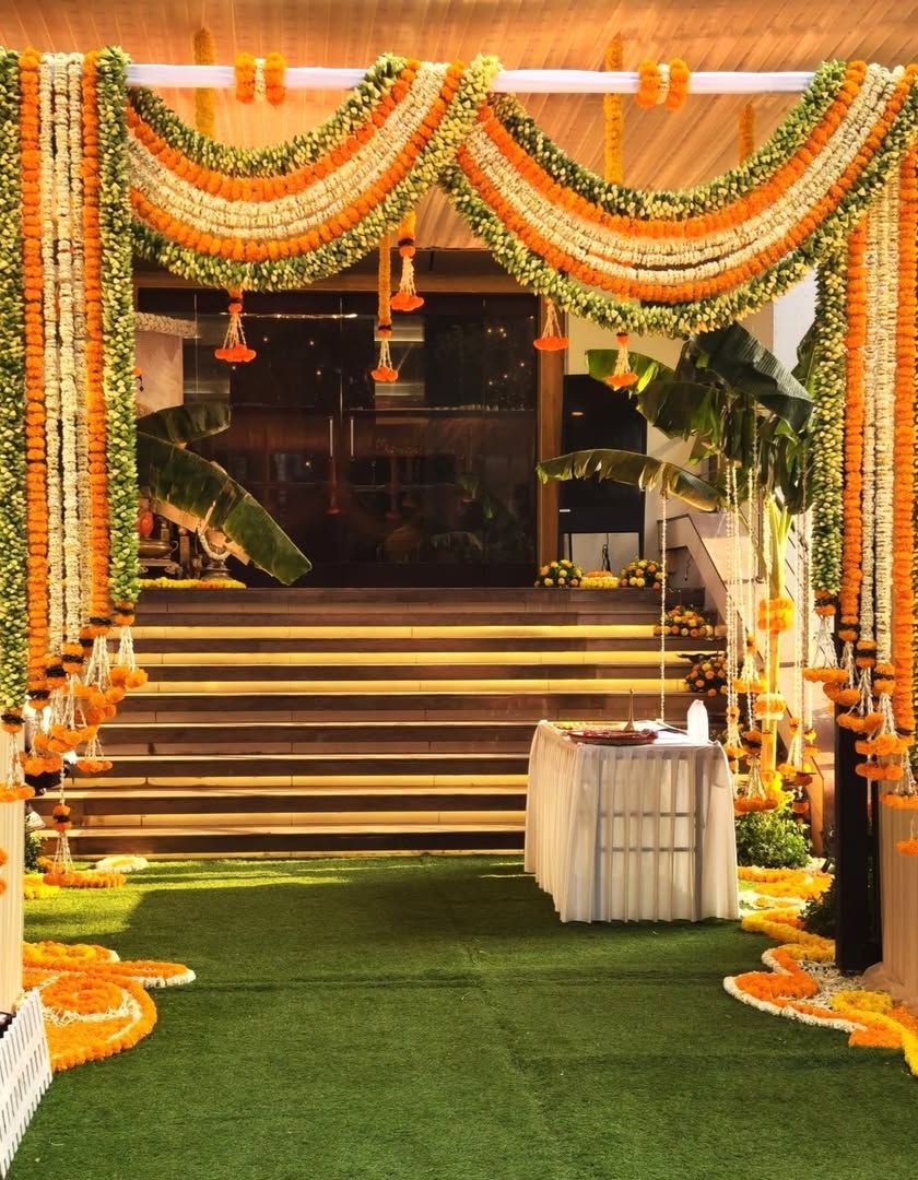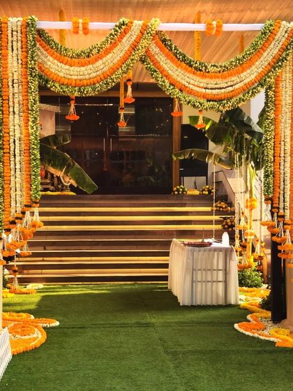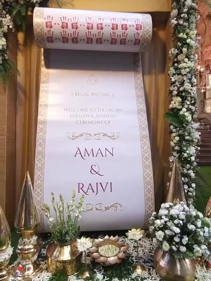 We design thoughtful and elegant decor for important pre-wedding ceremonies like Lagan Lakhwanu, Kankotri Lekhan, Mamera, and Mandap Mahurat. Our setups range from traditional brass and floral arrangements to elaborate scroll-themed entrances, ensuring each ritual is beautiful and memorable.